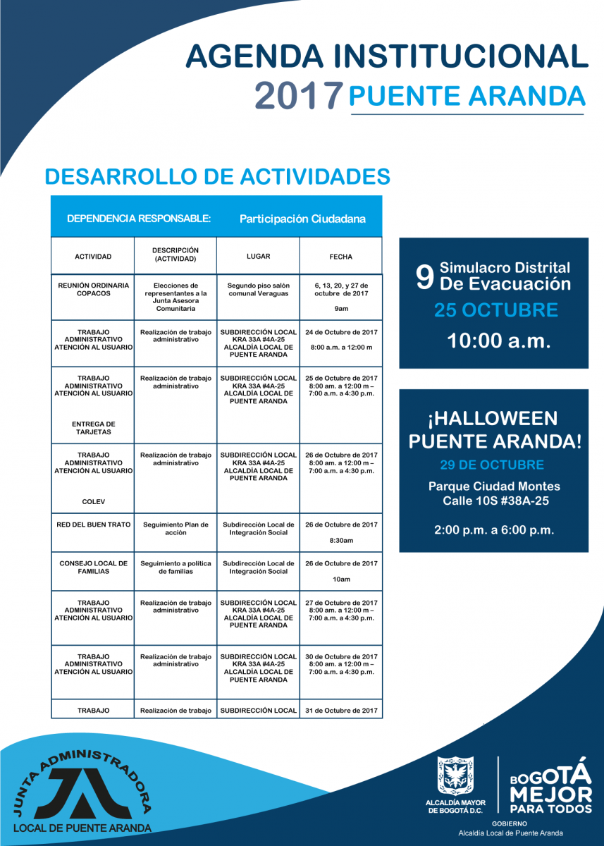 Agenda semanal Institucional Puente Aranda 2017 del 23 de Octubre al 31 de Octubre del 2017