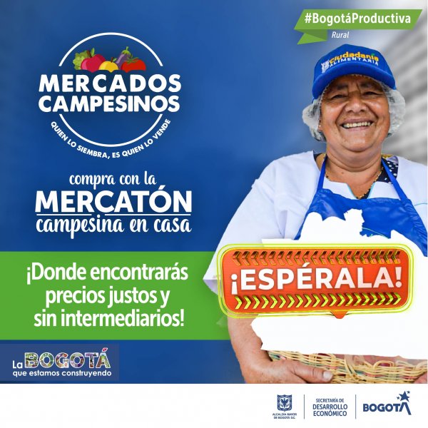 La Secretaría Distrital de Desarrollo Económico creó en el año 2020, la estrategia “Mercatón Campesina en casa”, una iniciativa que tiene como objetivo llevar productos del campo directamente a los hogares de Bogotá. En la actualidad, el propósito es impulsar la compra de canastas campesinas de productores de Bogotá rural y la Región Central a través de canales digitales para impactar positivamente la economía local campesina.