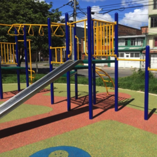• Actividades: cancha múltiple malla contra impacto un costado, pintura estructuras deportivas, demarcación cancha, senderos internos conectividad con zonas de juegos, zonas duras para juegos infantiles y para gimnasio al aire libre y ruta de la vida, mantenimiento mobiliario y dotación mobiliario nuevo, dos multifuncionales, pisos en caucho.